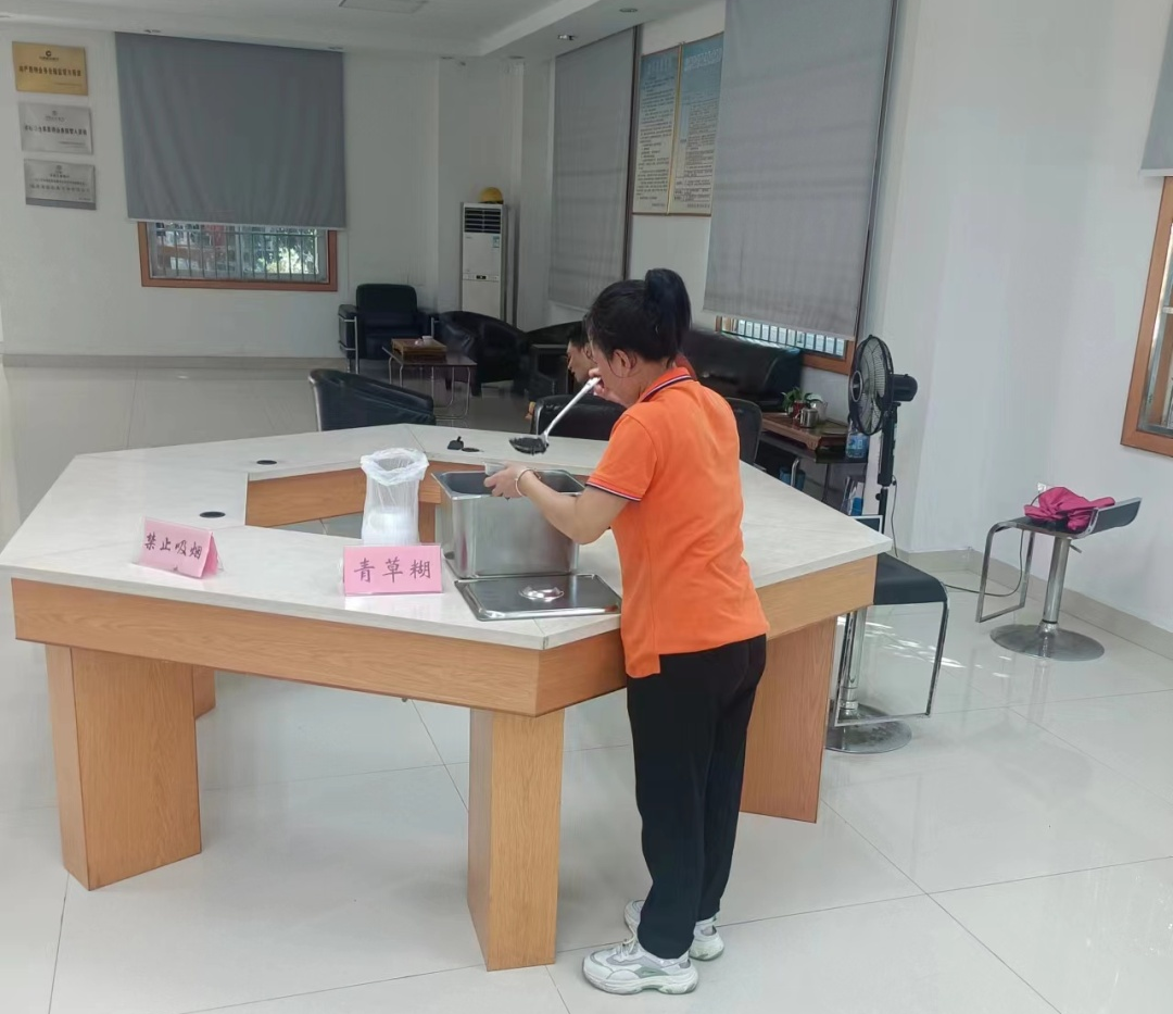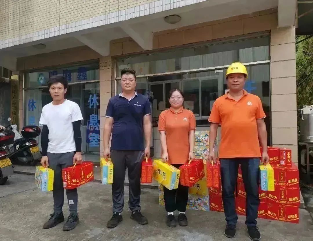公司工會(huì)還設(shè)置了清涼溫馨驛站,為員工提供青草糊、西瓜等清涼食物。