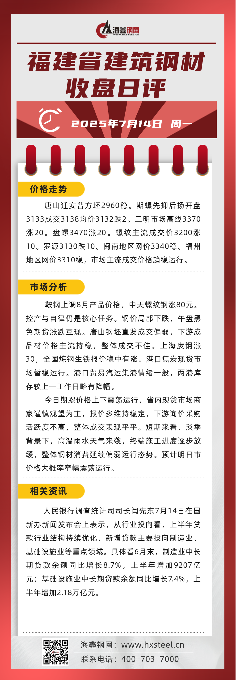 7月14日福建省內(nèi)建筑鋼材收盤日評(píng)