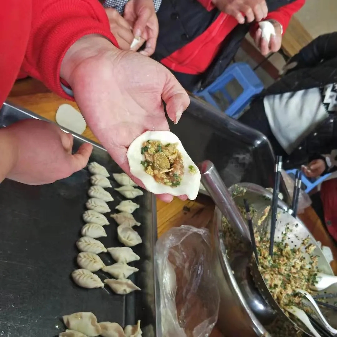 上午公司食堂工作人員就備好了餃子皮、肉餡、白菜、雞蛋、韭菜、硬幣等活動所需材料,下午大家?guī)霞覍冽R聚食堂,挽起袖子,分工有序,各顯身手。有的調(diào)餡,有的打蛋,有的切菜,忙的不亦樂乎,很快就塑造出各類帶有家鄉(xiāng)風(fēng)格的餃子,餃子的形狀也是創(chuàng)意百出,元寶形、耳朵形、月牙形、麥穗形等等,各式各樣。大家圍聚在一起,分享包餃子經(jīng)驗,講述自己家里的過年習(xí)俗及新年愿望,笑語不斷,氣氛和諧,歡聲笑語充滿著整個食堂操作間,手里捏出的每一個餃子都包含著職工間濃濃的關(guān)愛和對新年滿滿的祝福。