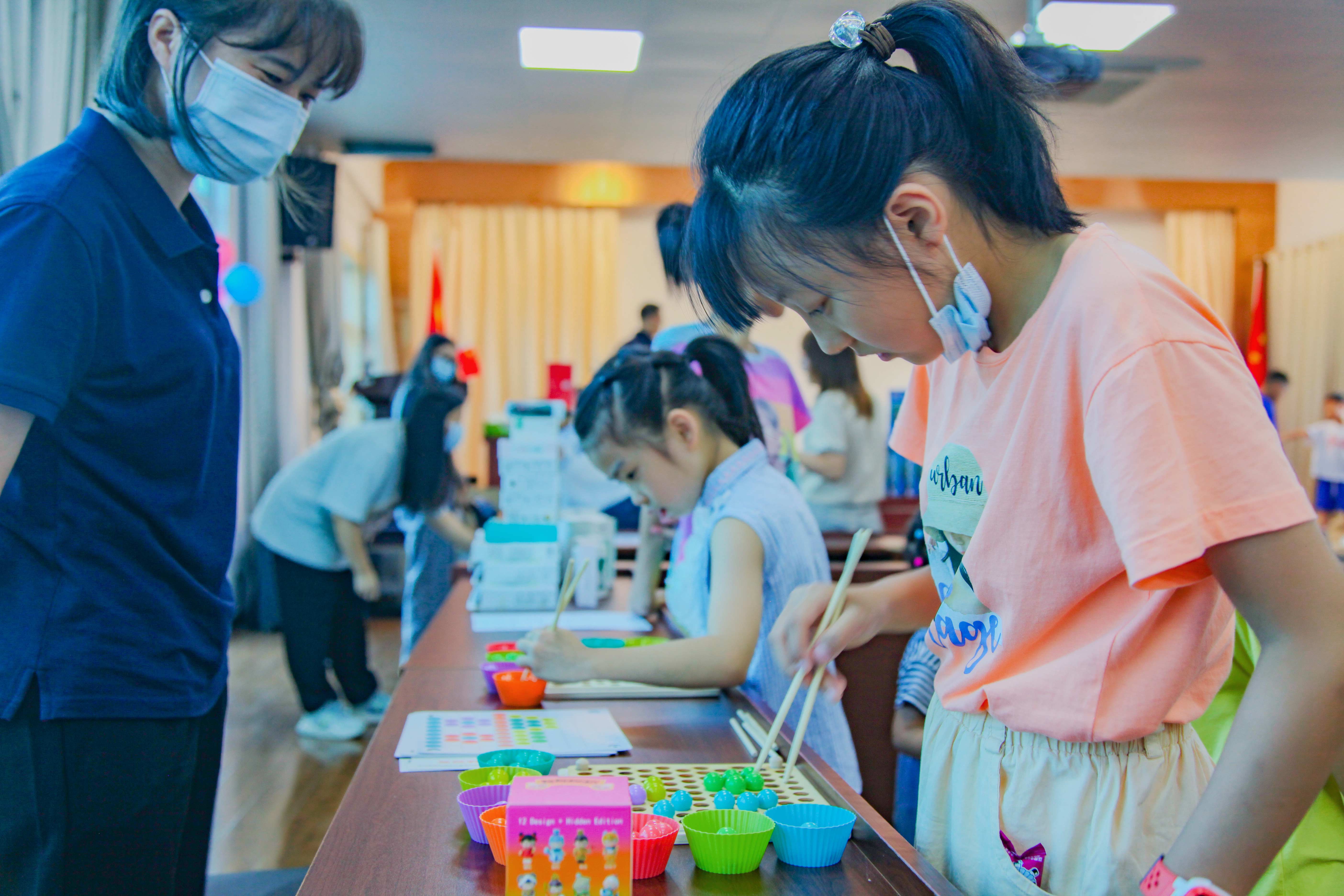 “夾彈珠”游戲考驗的是協調力和專注力。對于孩子們來說,熟練地使用筷子已經是一大挑戰,用筷子夾起圓滑的彈珠更是不易。和其他游戲場地的熱烈氣氛不同,“夾彈珠”區域最為安靜嚴肅。